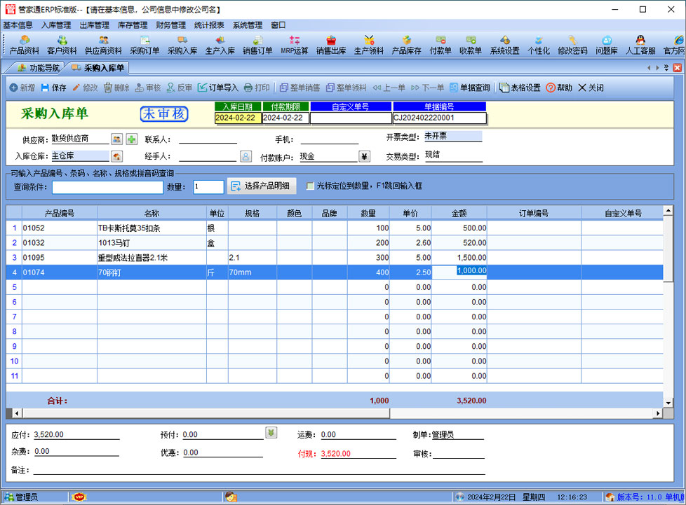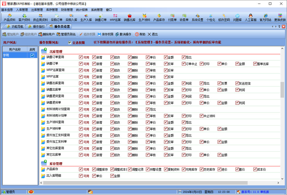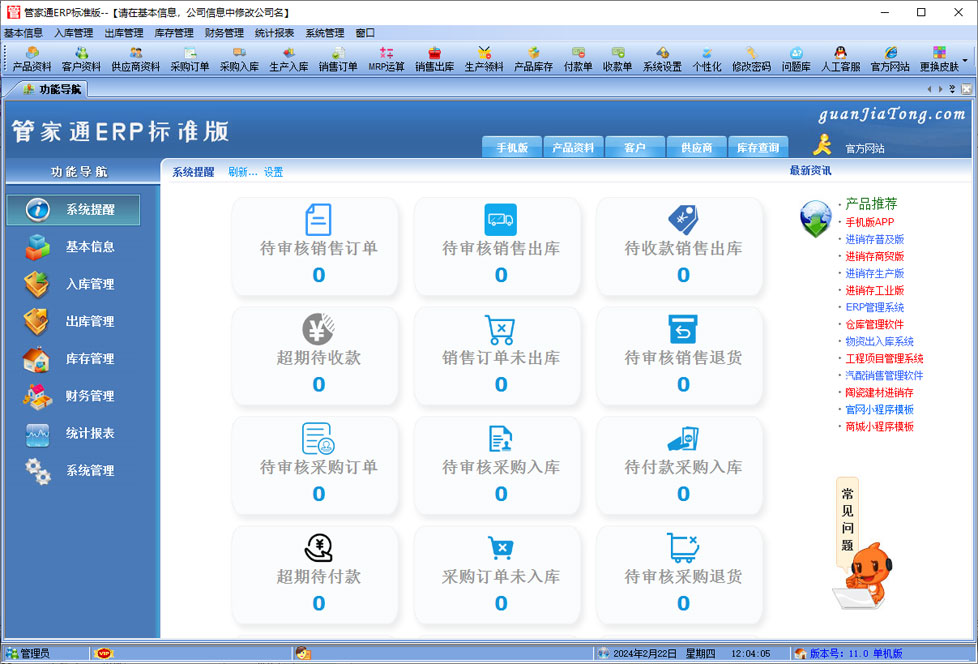 標準版主要功能為采購訂單,采購入庫,生產計劃,MRP運算,材料領用,生產入庫,銷售出庫,應收應付賬款管理。 |