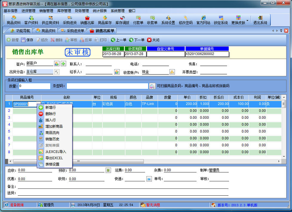 5、支持批量導入。軟件里面可以按照導入模板填好資料,批量導入商品資料,客戶資料,方便快捷。