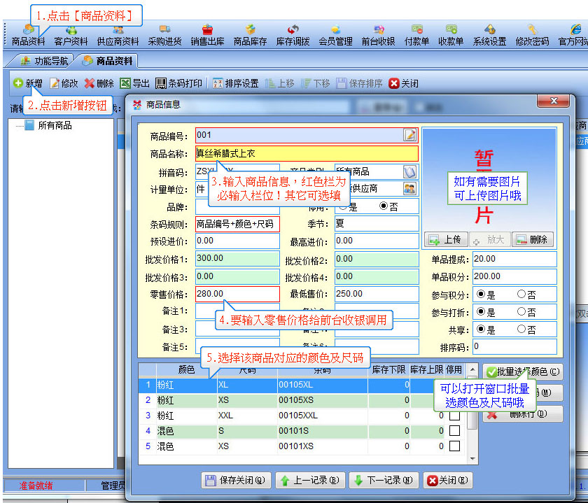 | 如果您對以上輸入覺得太慢??【基本信息】---【數據導入】可以批量從EXCEL或是TXT文件中導入所有商品資料,就不用單個的這樣輸入了哦! |