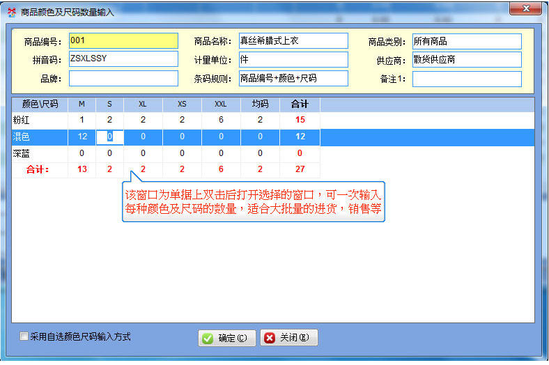 用于生成每個顏色及尺碼的每件衣服的獨立條碼,可用于制作條碼標簽。 |
