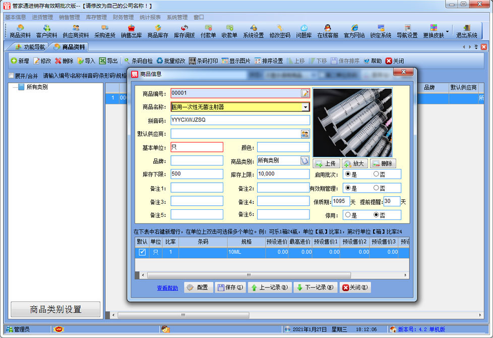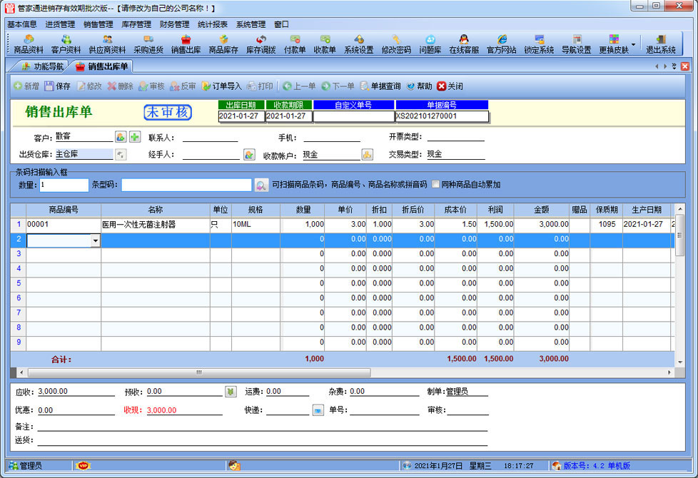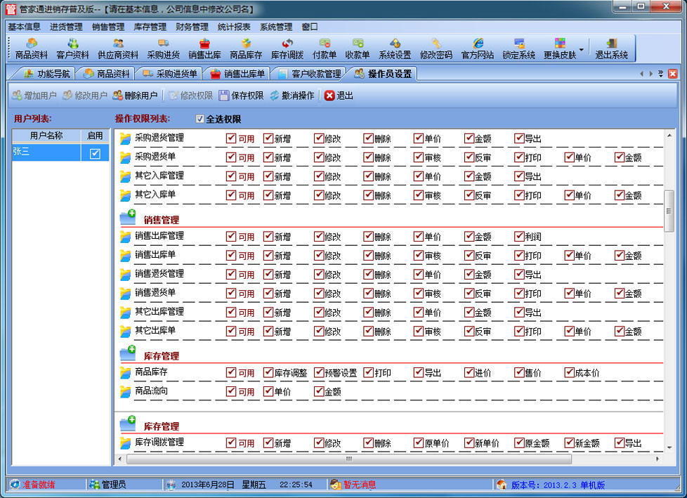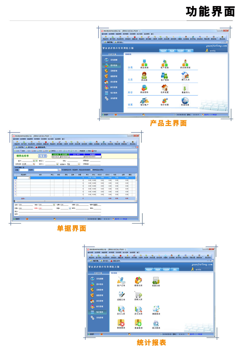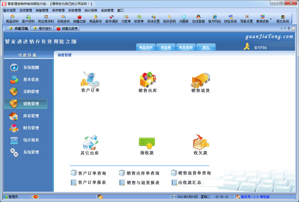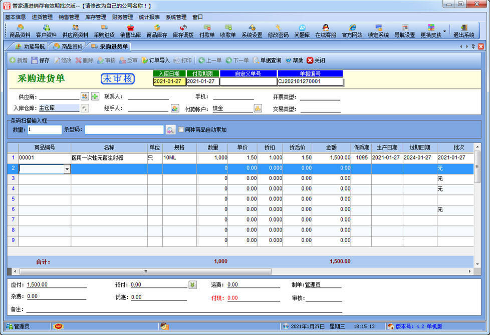 管家通進銷存有效期批次版是一款專業的針對批次及有效期管理的進銷存軟件,其中包含商品銷售管理系統 ,庫存管理系統(倉庫管理系統),財務和報表系統等子模塊。軟件界面設計簡潔,美觀,其人性化的軟件流程,使普通用戶不需培訓也能很快掌握軟件操作使用方法,上手極易。強大報表與集成查詢功能是本軟件的最大特色,所有功能在用戶需要的使用地方自然體現,不用打開多個窗口重復查詢。適用于商貿公司,個體門店等用于商業銷售管理, 庫存管理,財務管理等,客戶管理,員工管理等場合,是您企業進行信息化管理的強大工具。 入庫管理:進行商品采購入庫,采購退貨,進貨單據和退貨單據查詢 出庫管理:銷售出貨,客戶退貨,銷售單據和客戶退貨查詢。 庫存管理:包括庫存之間貨品調拔,庫存報損、報溢,庫存盤點功能。 財務管理:預付款、預收款,應收應付款,收入支出,,供應商往來帳務,供應商付款,客戶往來帳務,客戶付款 。 統計報表:完整的統計查詢功能,每張單據每次業務金額都可以清楚的反映。 權限管理:可添加刪除系統操作員帳號,強大的權限控制,可以設置某用戶對某窗口某個按鈕的權限。 打印設計:可對系統內每個單據進行打印的格式設計,可以導出,導入,每個操作員可設計自己的打印格式。 界面設計:系統窗口界面名稱可以自定義設計,表格的顯示順序,寬度,是否顯示等,每個操作員可以設計自己的界面。 系統設置:可以靈活設置系統小數位數,可選0-6位,讓帳務更精確,可對以往數據進行選擇性的清除,以便系統初始化。 數據備份:可隨時對系統數據庫進行安全備份,以防數據丟失。 |