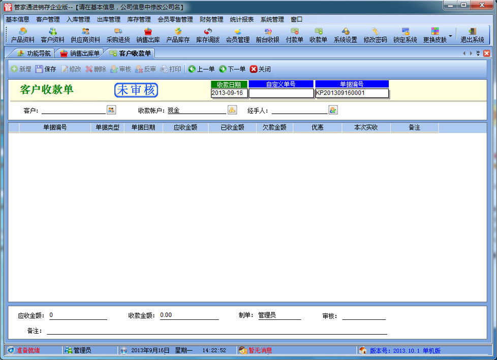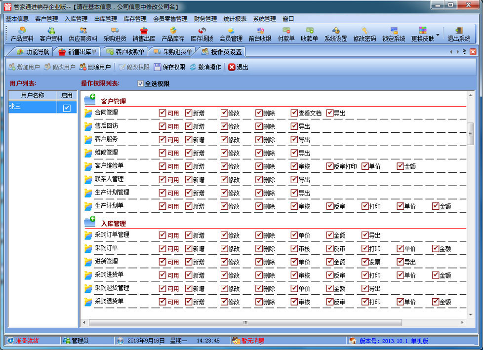 出庫管理:銷售出貨,客戶退貨,銷售單據和客戶退貨查詢,客戶往來帳務,客戶付款。