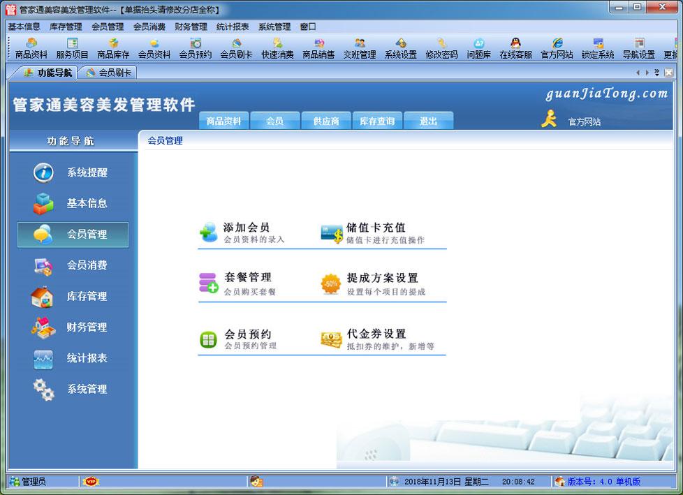 1、積分管理:可設(shè)置單品銷售積分,消費(fèi)多少元積1分,推薦一名會員積多少分或是下線會員積多少分上線自動積分等 2、會員卡功能:支持儲值,計次,計時消費(fèi),會員提醒(包括生日提醒),會員來電提示,短信群發(fā)。 3、支持POS58,POS80小票打印,客戶顯示屏。 4、會員卡可以使用條碼卡、磁條卡、ID卡、IC卡。 5、支持多種結(jié)帳方式:現(xiàn)金、儲值卡、代金券、刷卡,支付寶,微信等。 6、支持連鎖分店管理,各店數(shù)據(jù)可共享或獨(dú)立 7、可以在各個分店內(nèi)統(tǒng)一刷卡消費(fèi)和積分,統(tǒng)一管理經(jīng)營。 8、支持POS銷售。可以根據(jù)需要選配打印機(jī)、讀卡器、會員卡、條碼槍、錢箱、顧客顯示屏及小票打印機(jī);可以根據(jù)自已喜好設(shè)計各種有特性的打印格式。銷售時可以適時掌握每一個商品的當(dāng)前庫存數(shù),銷售成本、銷售毛利; 9、會員管理。可設(shè)置會員級別,不同級別可以適用不同的價格與折扣.可以自動計算會員的累計消費(fèi)、累計積分、兌現(xiàn)積分及剩余積分情況。過生日的會員可自動提醒; 10、在選擇商品時可以多選,即可以一次可以選擇多個商品; 11、可以設(shè)置單價、數(shù)量及銷售金額的核算精度即設(shè)置小數(shù)點(diǎn)位數(shù); 12、可以適時顯示往來單位(供貨商)的應(yīng)付帳款、預(yù)付帳款; 13、無處不在的顯示商品圖片的功能.支持圖片存放數(shù)據(jù)庫中,也可以存放軟件目錄文件夾中; 14、支持手工盤點(diǎn)(直接輸入需要盤點(diǎn)的商品)、自動盤點(diǎn)(直接對整個分店進(jìn)行盤點(diǎn))及盤點(diǎn)機(jī)盤點(diǎn); 15、權(quán)限設(shè)置功能強(qiáng)大.可以設(shè)置每個員工的菜單操作權(quán)、單據(jù)操作權(quán)、操作權(quán)及其他操作權(quán)限{比如:查看成本權(quán)(即能不能看到進(jìn)價及毛利)、售價調(diào)整權(quán)(即能不能在銷售時修改售價及折扣)等}; 16、支持?jǐn)?shù)據(jù)導(dǎo)入導(dǎo)出(比如:從其它軟件中導(dǎo)入期初庫存,商品資料,客戶,供應(yīng)商,會員等...... 17、 單據(jù)支持自定義設(shè)計格式、打印前預(yù)覽,并且可以導(dǎo)出為Excel文件,然后根據(jù)您的實(shí)際需要進(jìn)行特別編排處理; 18、功能強(qiáng)大的各類統(tǒng)計報表,為您提供詳盡的營業(yè)報告,讓您對商品進(jìn)、銷、存及利潤等財務(wù)狀況了如指掌; 19、升級智能化。您只需輕點(diǎn)鼠標(biāo),便可通過互聯(lián)網(wǎng)實(shí)現(xiàn)軟件的升級,免除您升級之苦。 |