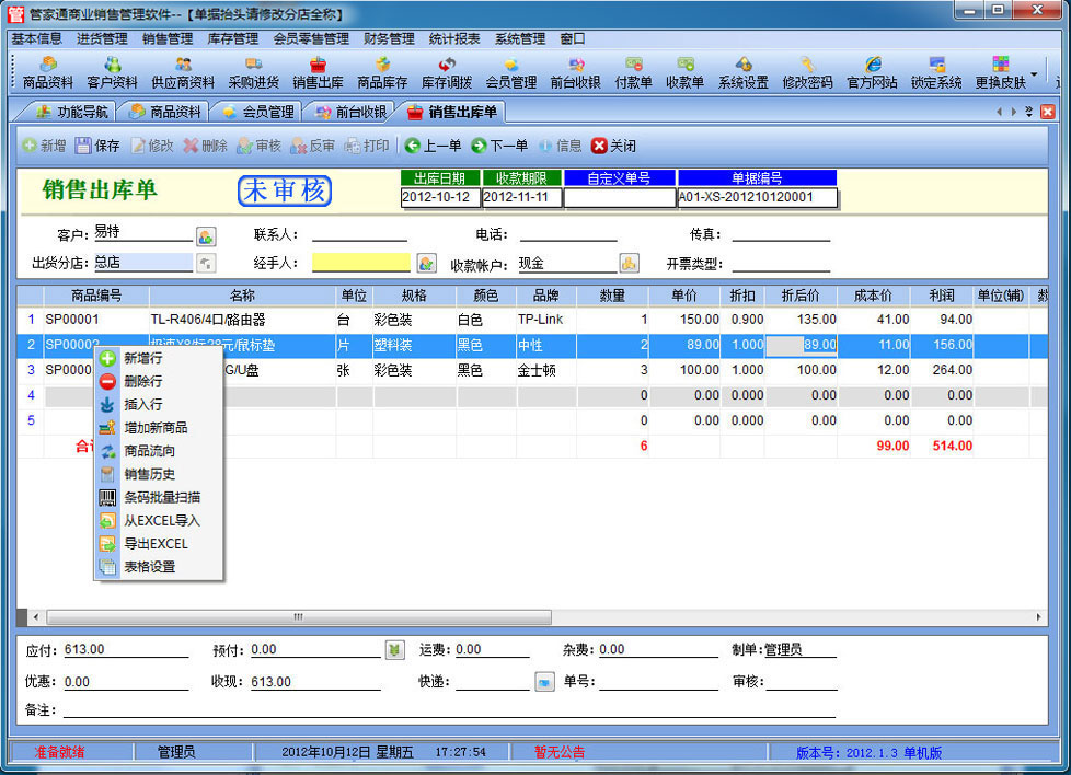 如果需要有效期過期提醒管理(食品行業),多單位(開單可選不同的單位不同的價格)、多條碼、條碼稱支持等 請點擊這里下載管家通百貨管理軟件 |